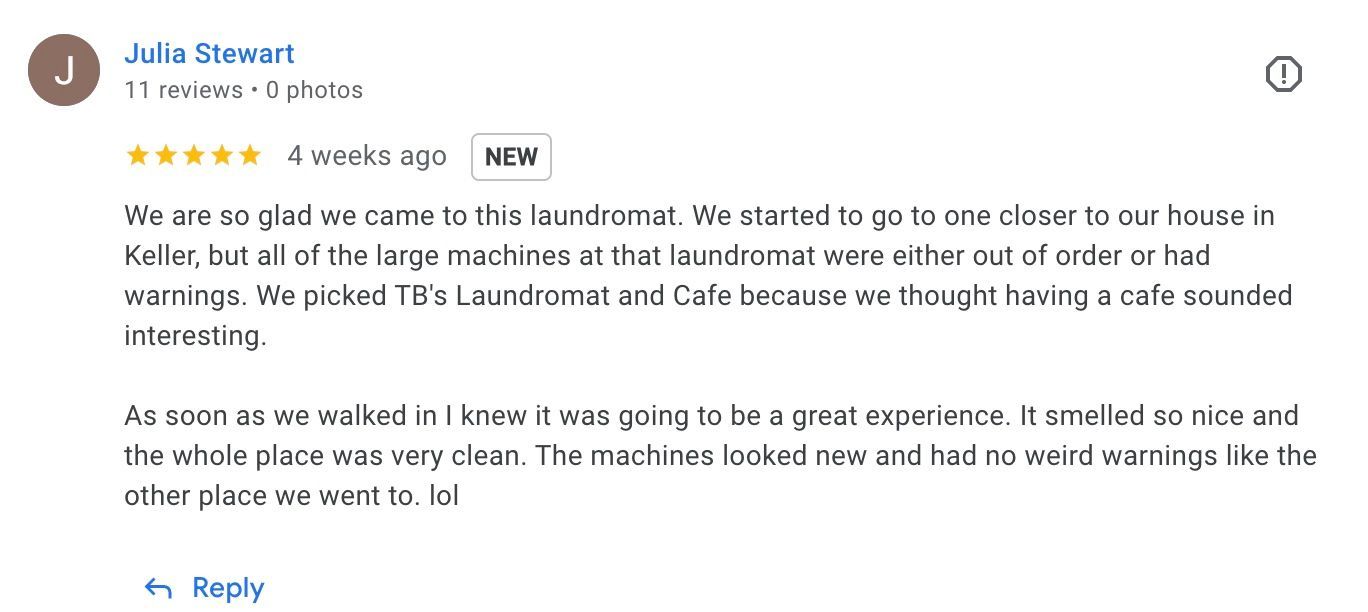 Discover the ultimate in laundry convenience at TB's Laundromat and Café. Our wash & fold services take the hassle out of laundry day, leaving you with more time for what matters. Impeccable cleanliness, precise folding, and a quick turnaround make us your go-to destination for laundry excellence.